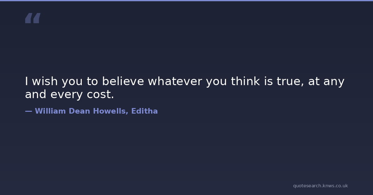 I wish you to believe whatever you think is true, at any and every cost. believe editha george mgg truth william-dean-howells Download Image Share on X Share on Facebook Copy Link
