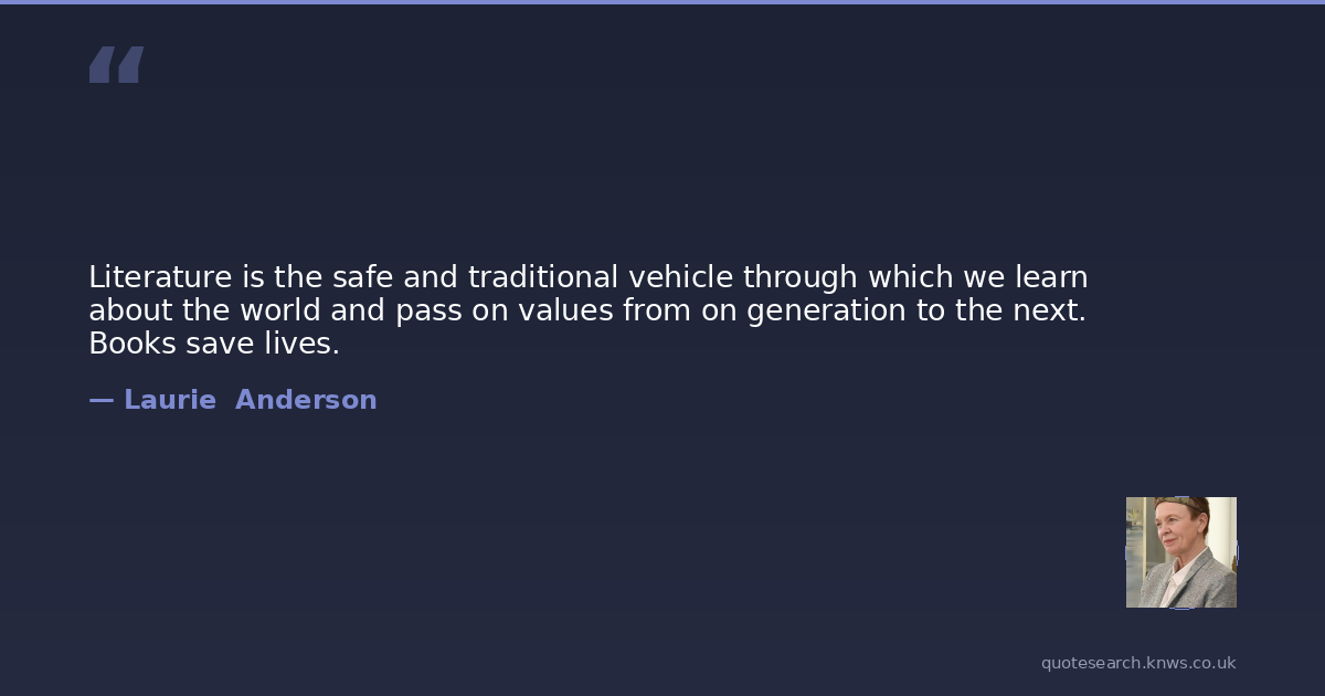 Literature is the safe and traditional vehicle through which we learn about the world and pass on values from on generation to the next. Books save lives.