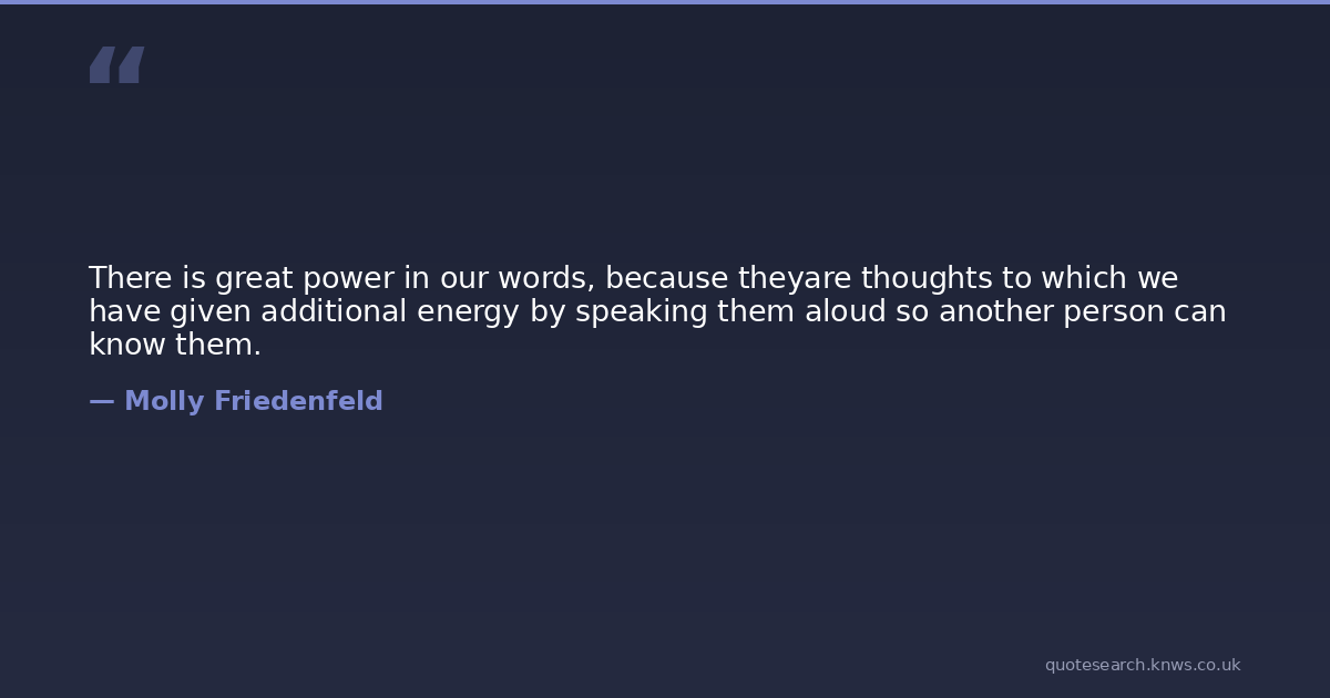 There is great power in our words, because theyare thoughts to which we have given additional energy by speaking them aloud so another person can know them.