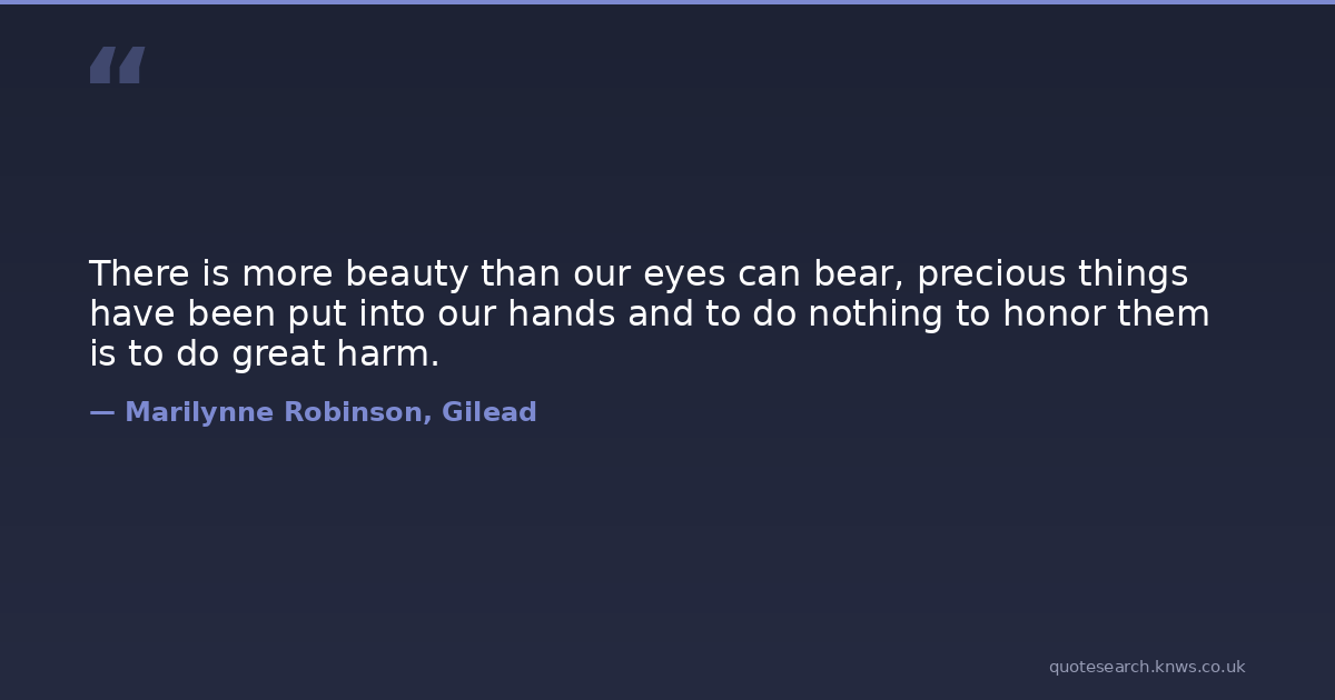 There is more beauty than our eyes can bear, precious things have been put into our hands and to do nothing to honor them is to do great harm.
