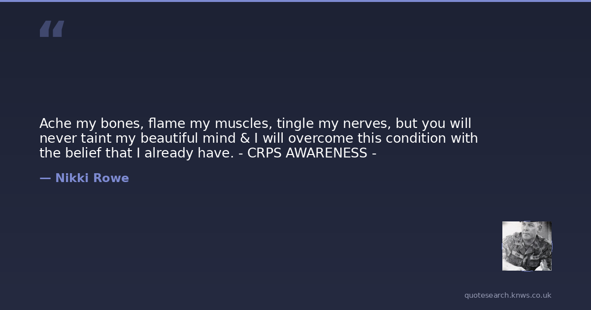 Ache my bones, flame my muscles, tingle my nerves, but you will never taint my beautiful mind & I will overcome this condition with the belief that I already have. - CRPS AWARENESS -