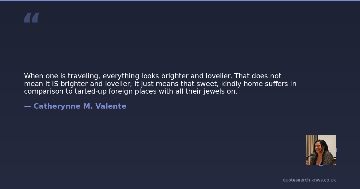 When one is traveling, everything looks brighter and lovelier. That does not mean it IS brighter and lovelier; it just means that sweet, kindly home suffers in comparison to tarted-up foreign places with all their jewels on.