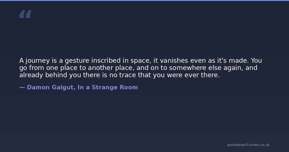 A journey is a gesture inscribed in space, it vanishes even as it's made. You go from one place to another place, and on to somewhere else again, and already behind you there is no trace that you were ever there.