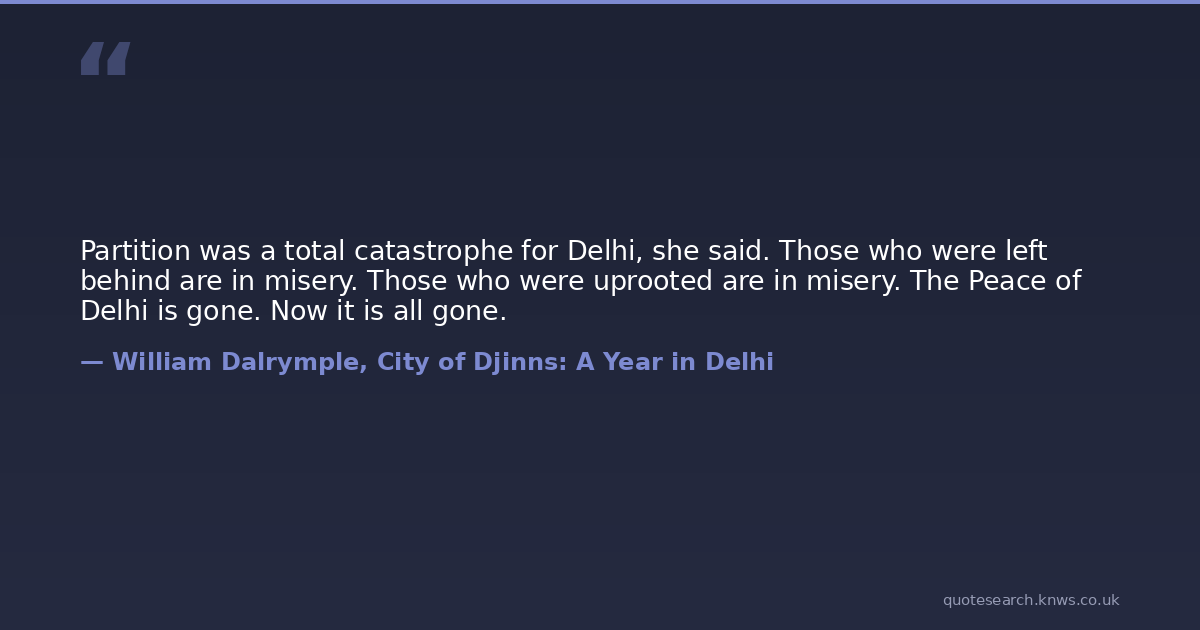 Partition was a total catastrophe for Delhi, she said. Those who were left behind are in misery. Those who were uprooted are in misery. The Peace of Delhi is gone. Now it is all gone.