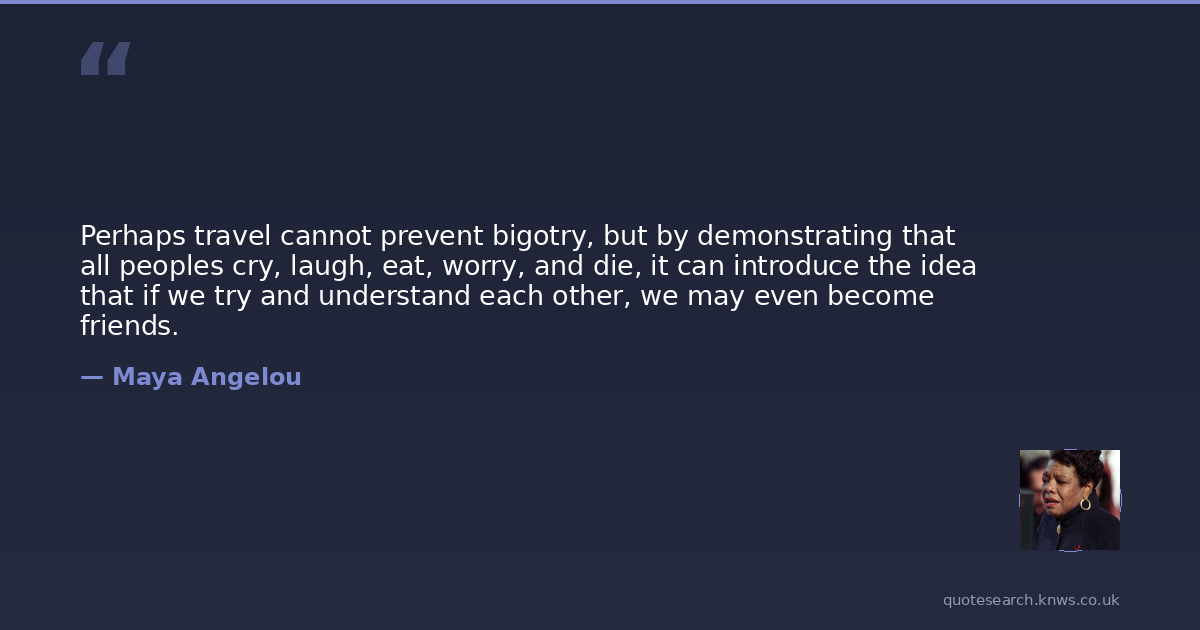 Perhaps travel cannot prevent bigotry, but by demonstrating that all peoples cry, laugh, eat, worry, and die, it can introduce the idea that if we try and understand each other, we may even become friends.