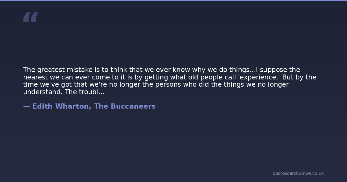 The greatest mistake is to think that we ever know why we do things...I suppose the nearest we can ever come to it is by getting what old people call 'experience.' But by the time we've got that we're no longer the persons who did the things we no longer understand. The trouble is, I suppose, that we change every moment; and the things we did stay.