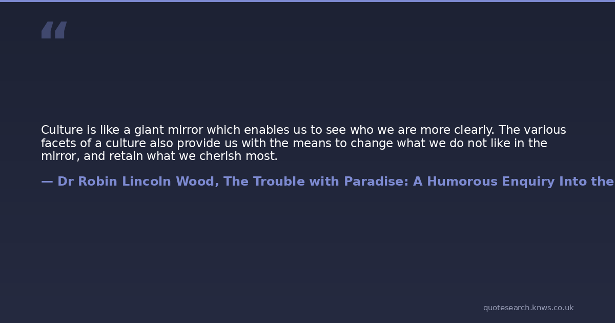 Culture is like a giant mirror which enables us to see who we are more clearly. The various facets of a culture also provide us with the means to change what we do not like in the mirror, and retain what we cherish most.