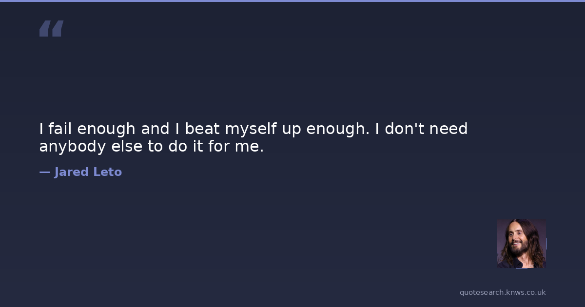 I fail enough and I beat myself up enough. I don't need anybody else to do it for me.