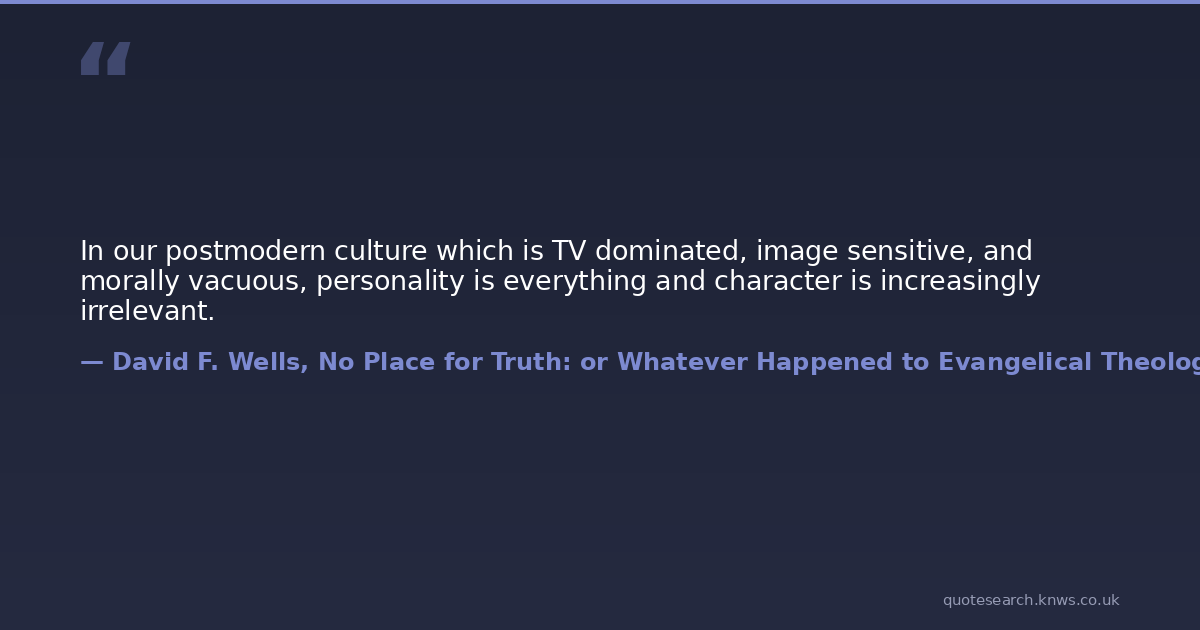 In our postmodern culture which is TV dominated, image sensitive, and morally vacuous, personality is everything and character is increasingly irrelevant.