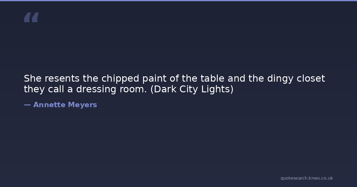 She resents the chipped paint of the table and the dingy closet they call a dressing room. (Dark City Lights)