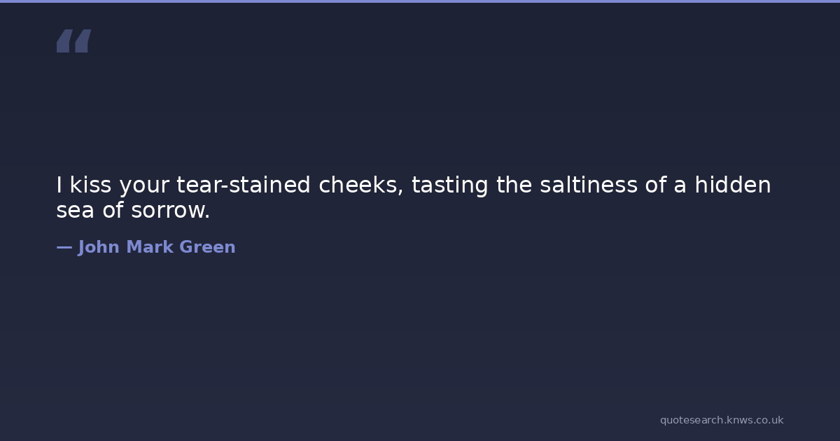 I kiss your tear-stained cheeks, tasting the saltiness of a hidden sea of sorrow.