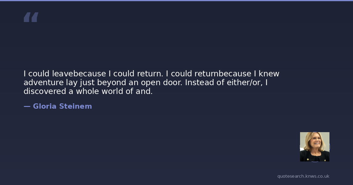 I could leavebecause I could return. I could returnbecause I knew adventure lay just beyond an open door. Instead of either/or, I discovered a whole world of and.