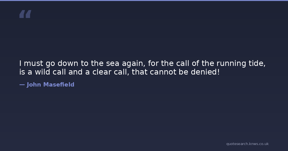 I must go down to the sea again, for the call of the running tide, is a wild call and a clear call, that cannot be denied!