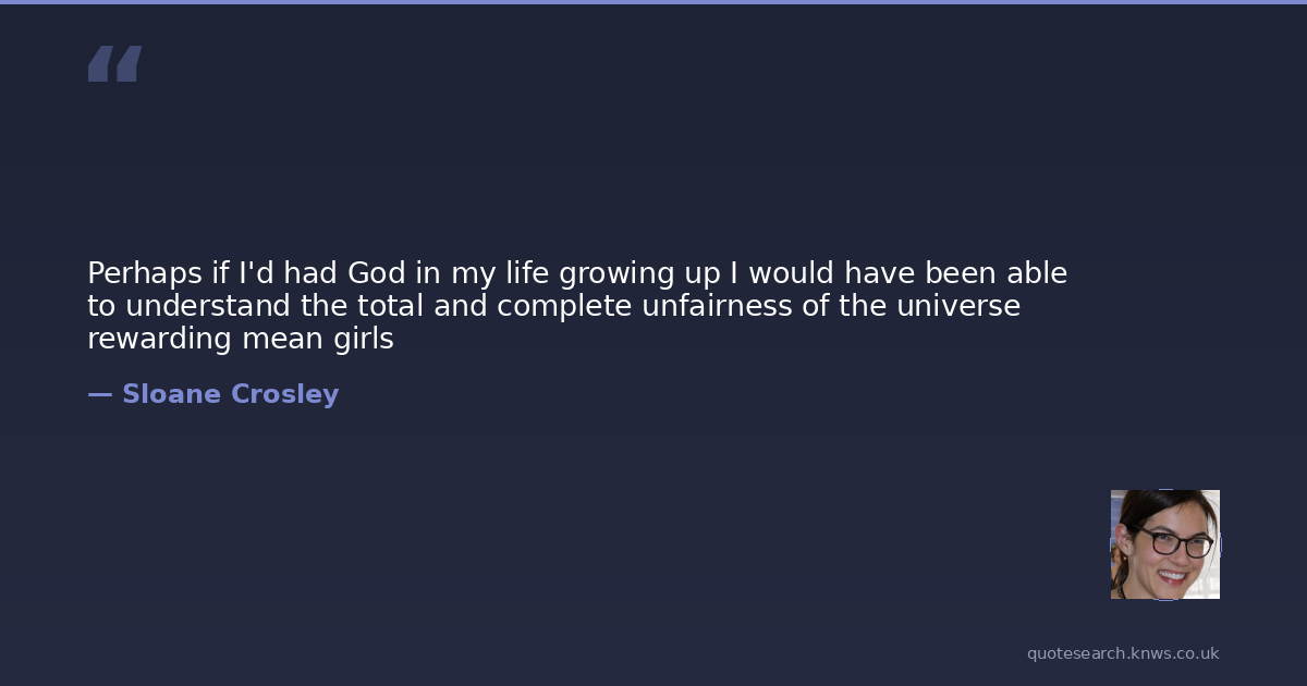 Perhaps if I'd had God in my life growing up I would have been able to understand the total and complete unfairness of the universe rewarding mean girls