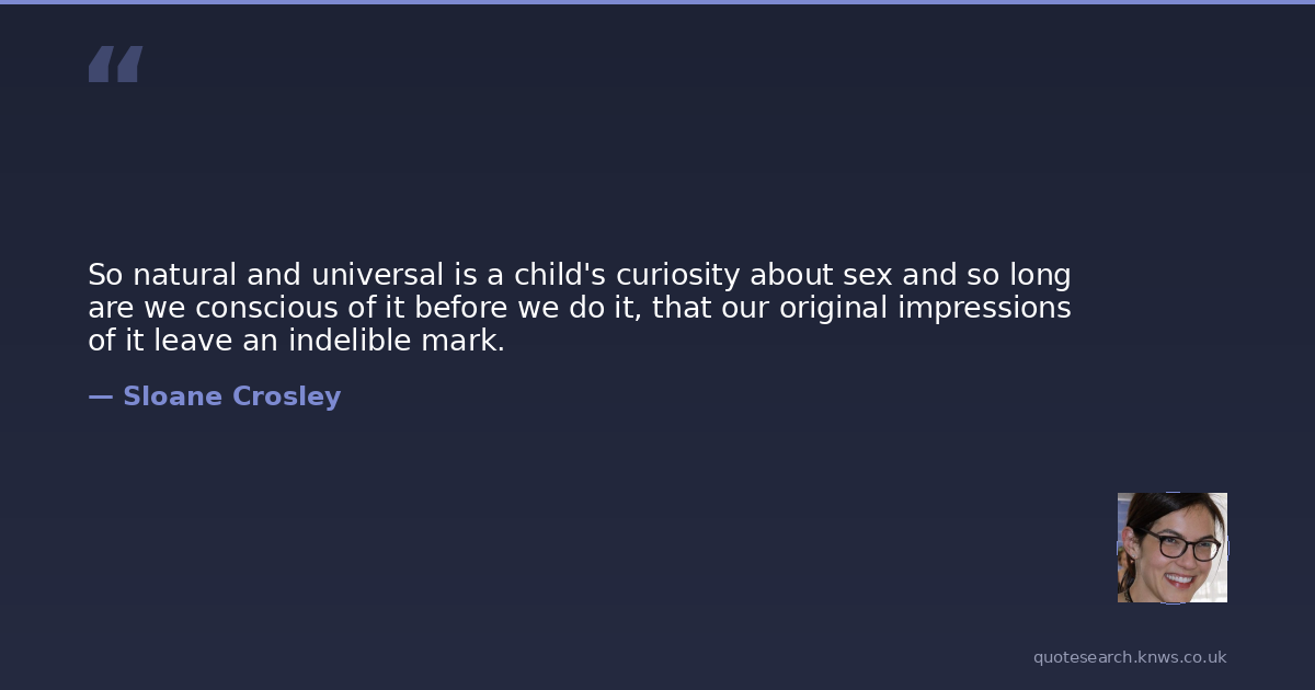 So natural and universal is a child's curiosity about sex and so long are we conscious of it before we do it, that our original impressions of it leave an indelible mark.