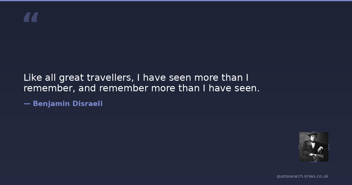 Like all great travellers, I have seen more than I remember, and remember more than I have seen.