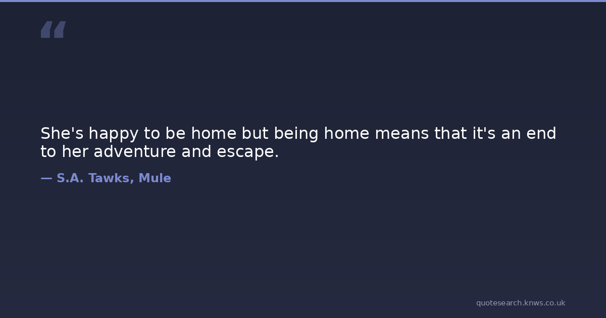 She's happy to be home but being home means that it's an end to her adventure and escape.