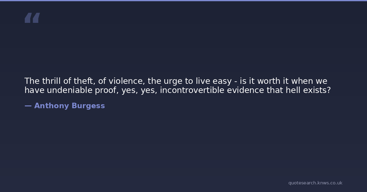 The thrill of theft, of violence, the urge to live easy - is it worth it when we have undeniable proof, yes, yes, incontrovertible evidence that hell exists?