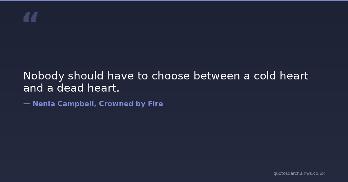 Nobody should have to choose between a cold heart and a dead heart. angst angsty-love broken-heart coldness cruelty dark heartache heartbreak loneliness loneliness-quotes sadness sadquotes Download Image Share on X Share on Facebook Copy Link