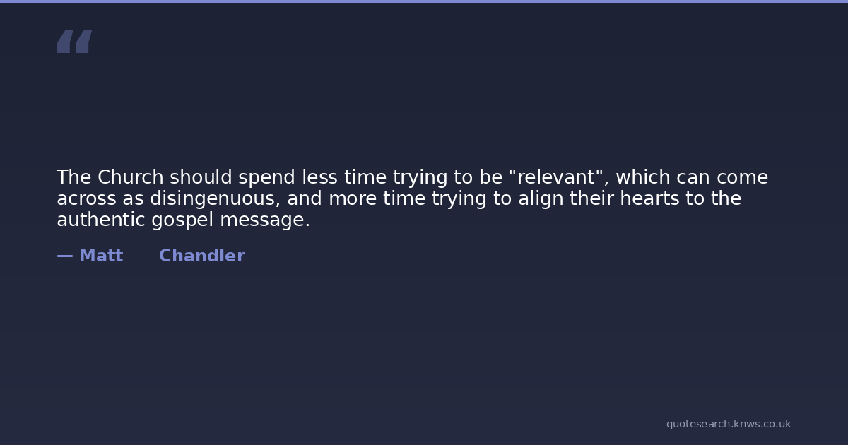 The Church should spend less time trying to be "relevant", which can come across as disingenuous, and more time trying to align their hearts to the authentic gospel message.