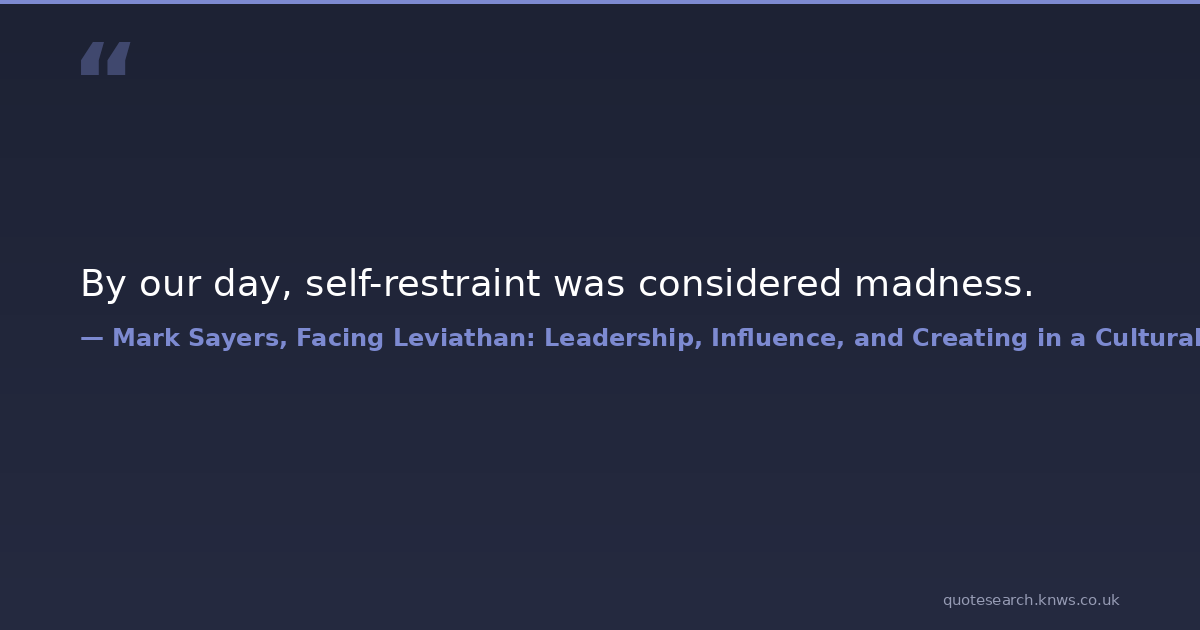 By our day, self-restraint was considered madness. conventional-wisdom culture self-control Download Image Share on X Share on Facebook Copy Link