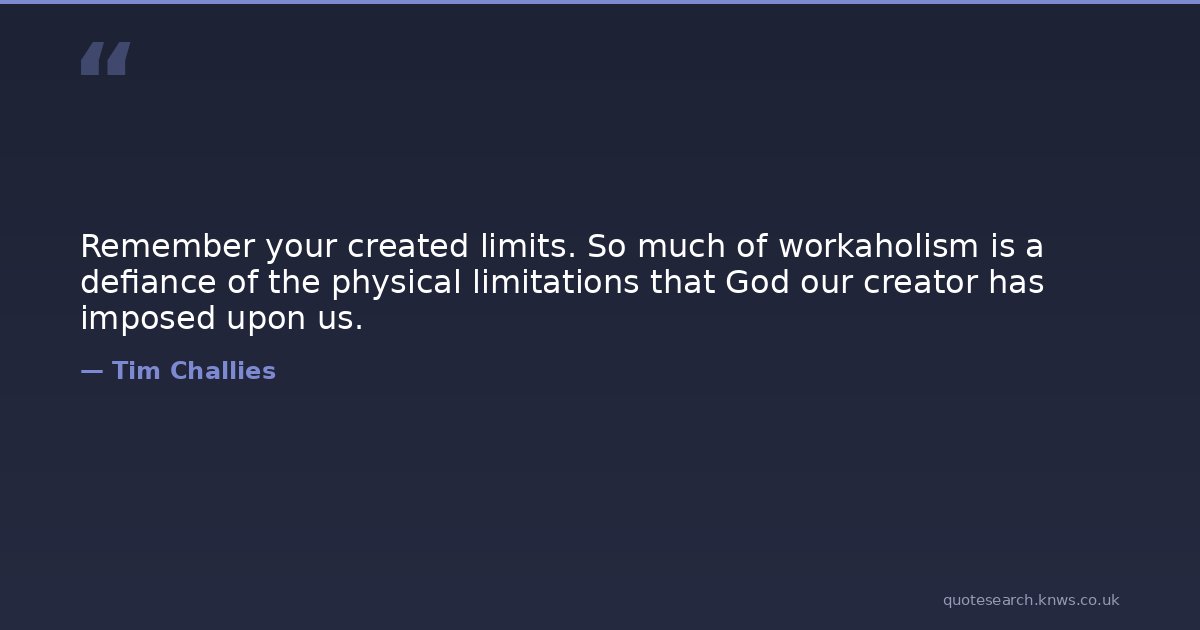 Remember your created limits. So much of workaholism is a defiance of the physical limitations that God our creator has imposed upon us.