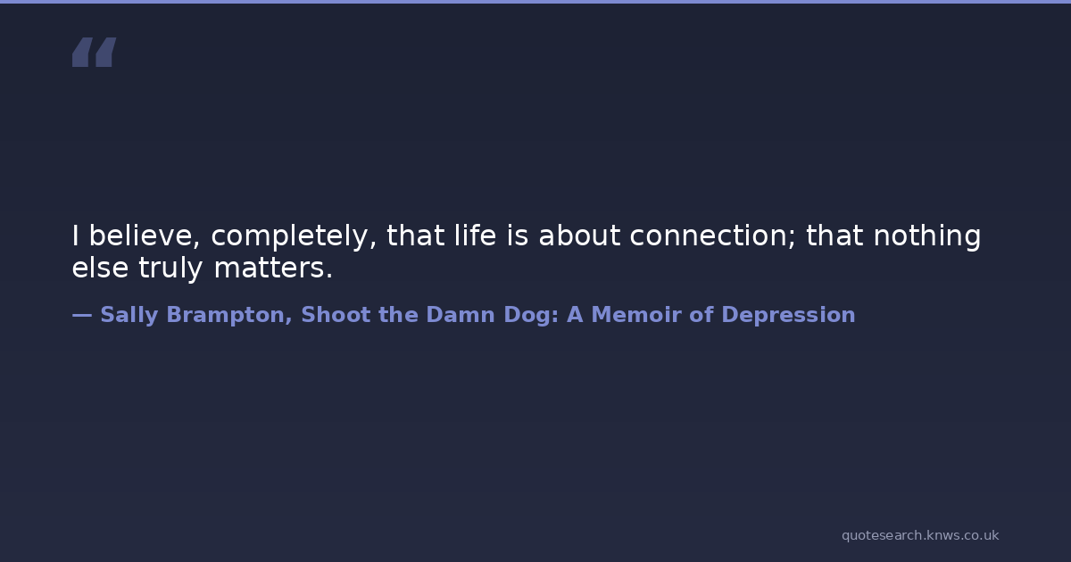 I believe, completely, that life is about connection; that nothing else truly matters.