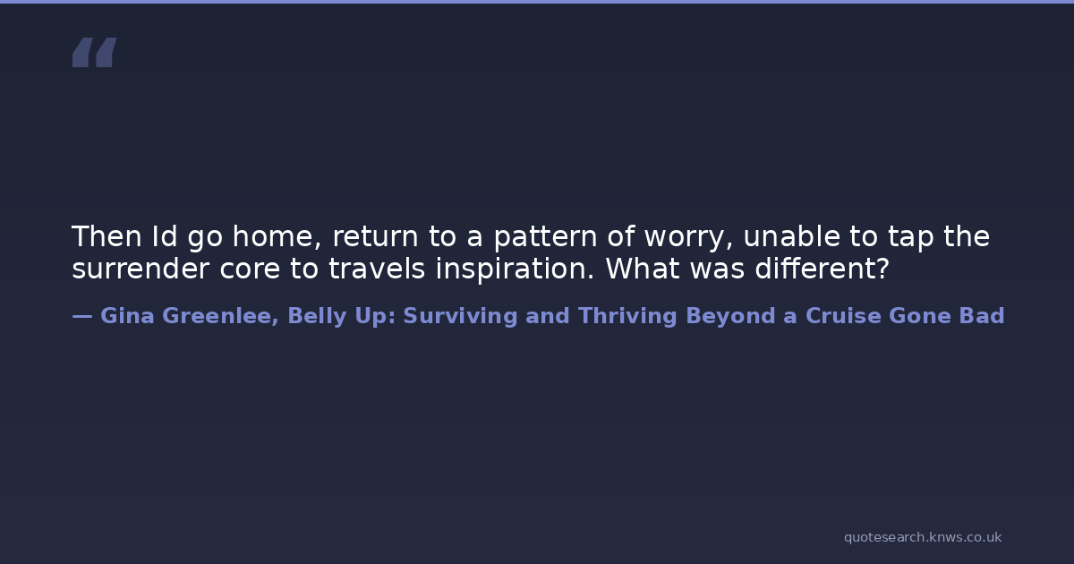 Then Id go home, return to a pattern of worry, unable to tap the surrender core to travels inspiration. What was different?