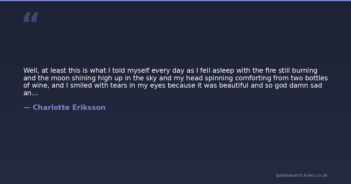 Well, at least this is what I told myself every day as I fell asleep with the fire still burning and the moon shining high up in the sky and my head spinning comforting from two bottles of wine, and I smiled with tears in my eyes because it was beautiful and so god damn sad and I did not know how to be one of those without the other.