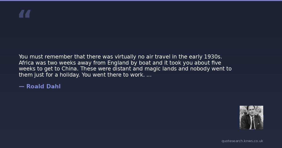 You must remember that there was virtually no air travel in the early 1930s. Africa was two weeks away from England by boat and it took you about five weeks to get to China. These were distant and magic lands and nobody went to them just for a holiday. You went there to work. Nowadays you can go anywhere in the world in a few hours and nothing is fabulous anymore.
