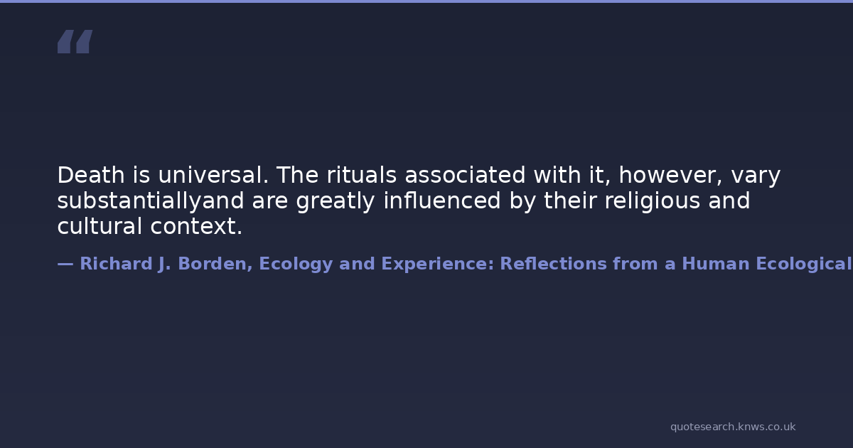 Death is universal. The rituals associated with it, however, vary substantiallyand are greatly influenced by their religious and cultural context.