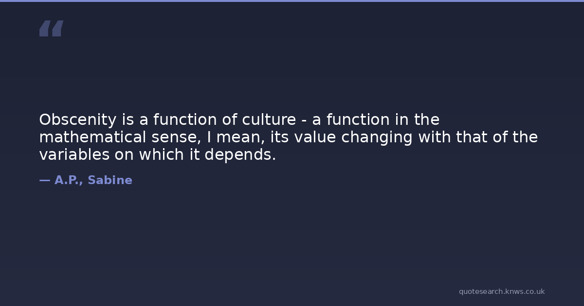 Obscenity is a function of culture - a function in the mathematical sense, I mean, its value changing with that of the variables on which it depends.