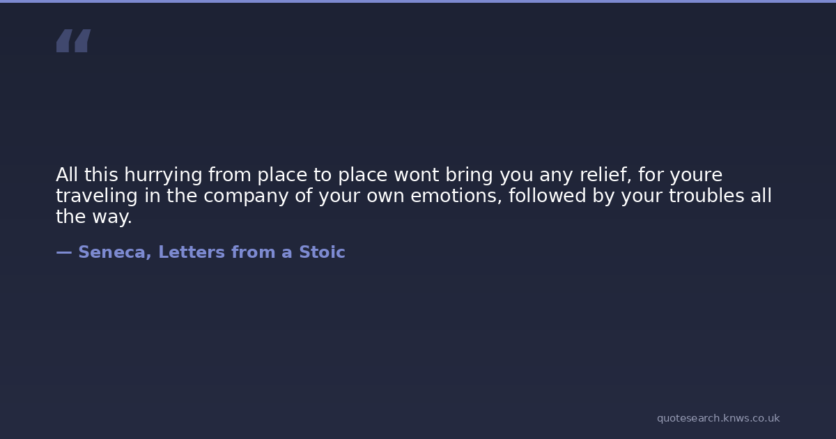 All this hurrying from place to place wont bring you any relief, for youre traveling in the company of your own emotions, followed by your troubles all the way.