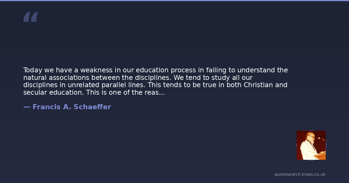 Today we have a weakness in our education process in failing to understand the natural associations between the disciplines. We tend to study all our disciplines in unrelated parallel lines. This tends to be true in both Christian and secular education. This is one of the reasons why evangelical Christians have been taken by surprise at the tremendous shift that has come in our generation.