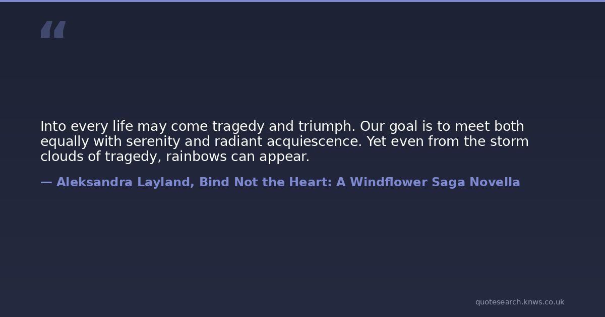 Into every life may come tragedy and triumph. Our goal is to meet both equally with serenity and radiant acquiescence. Yet even from the storm clouds of tragedy, rainbows can appear.