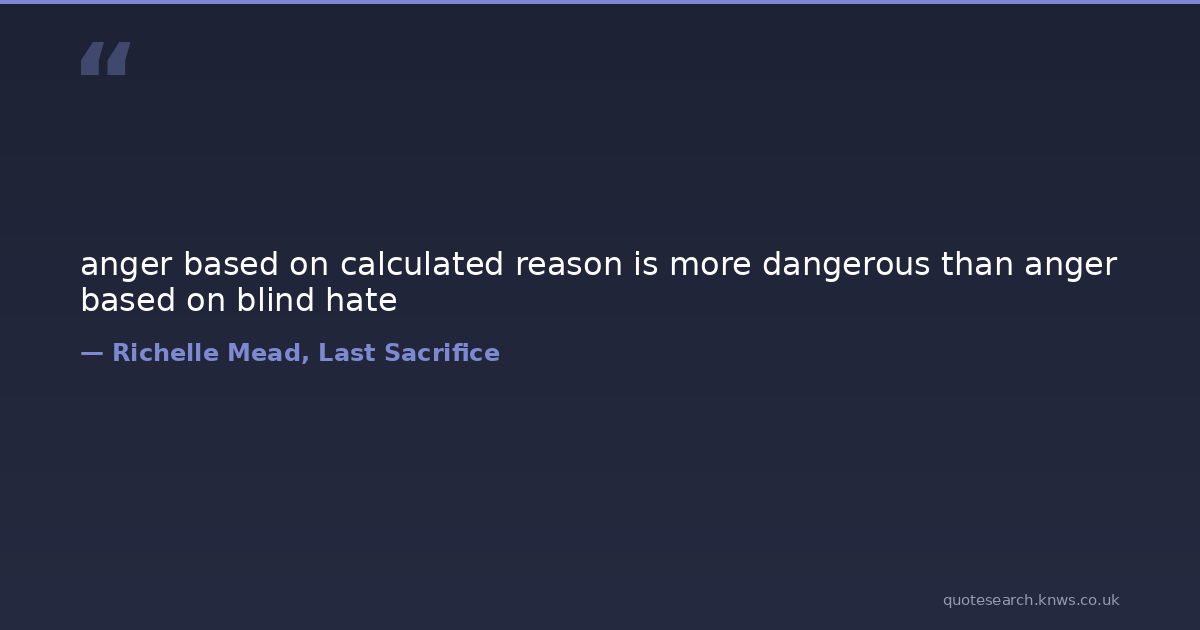 anger based on calculated reason is more dangerous than anger based on blind hate