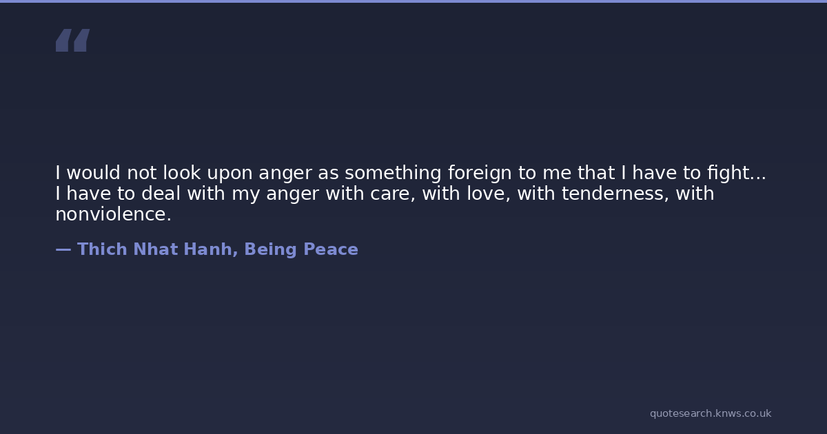I would not look upon anger as something foreign to me that I have to fight... I have to deal with my anger with care, with love, with tenderness, with nonviolence.