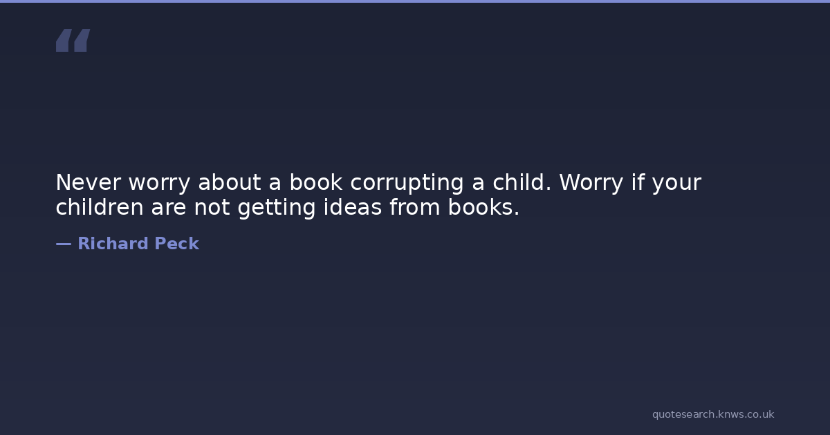 Never worry about a book corrupting a child. Worry if your children are not getting ideas from books.