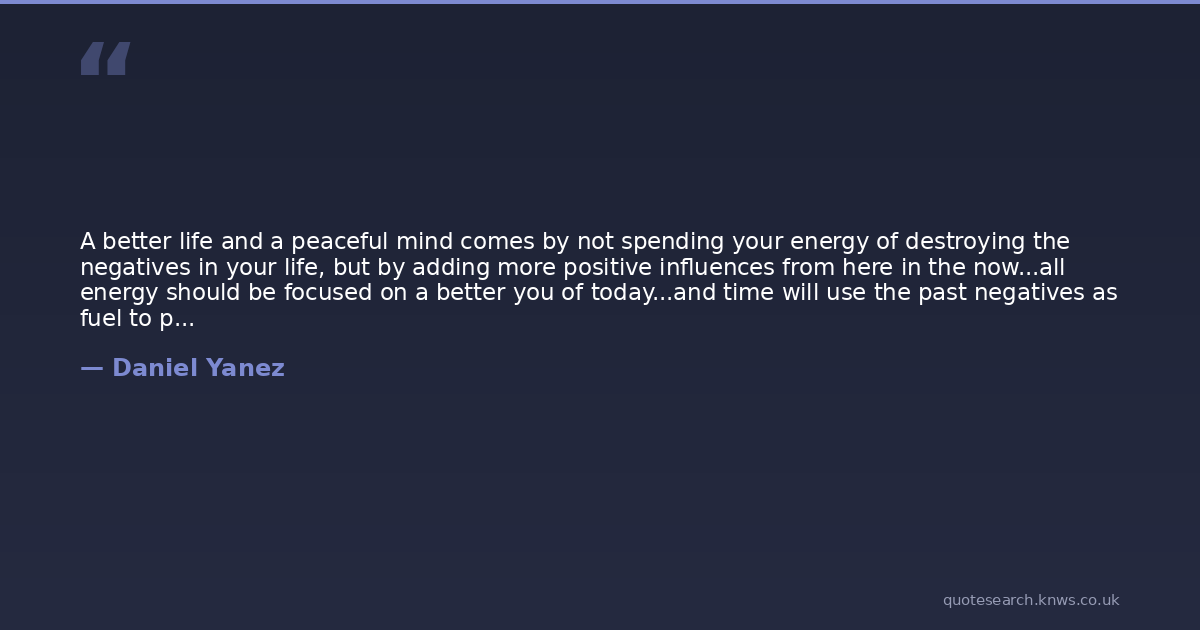 A better life and a peaceful mind comes by not spending your energy of destroying the negatives in your life, but by adding more positive influences from here in the now...all energy should be focused on a better you of today...and time will use the past negatives as fuel to propel you in the right direction..