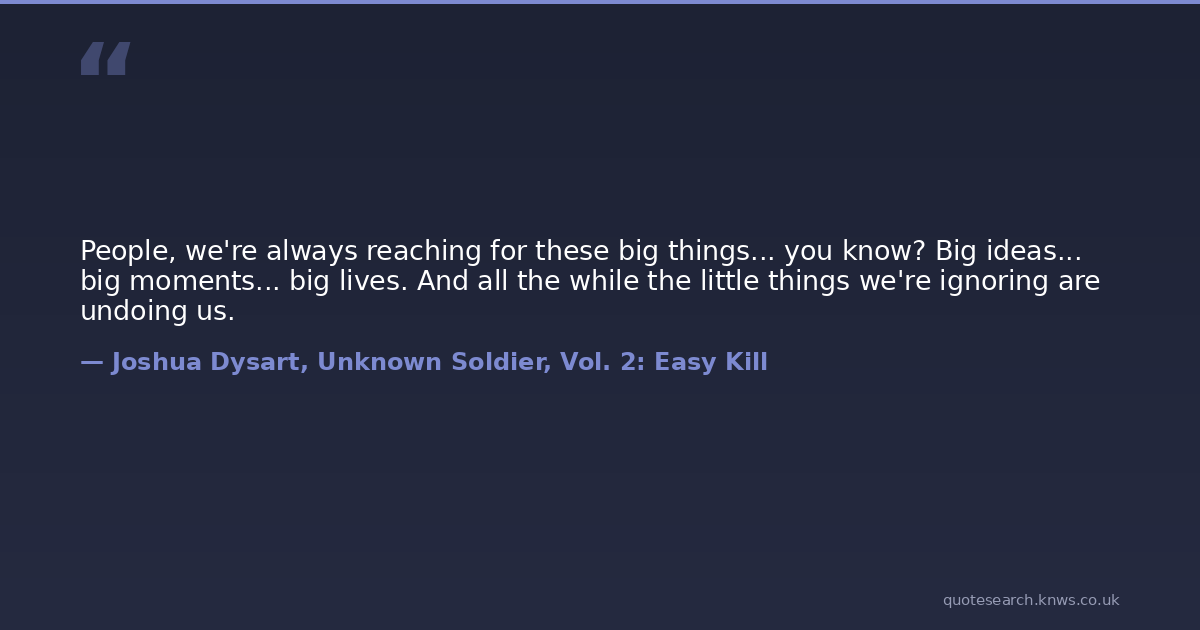 People, we're always reaching for these big things... you know? Big ideas... big moments... big lives. And all the while the little things we're ignoring are undoing us.