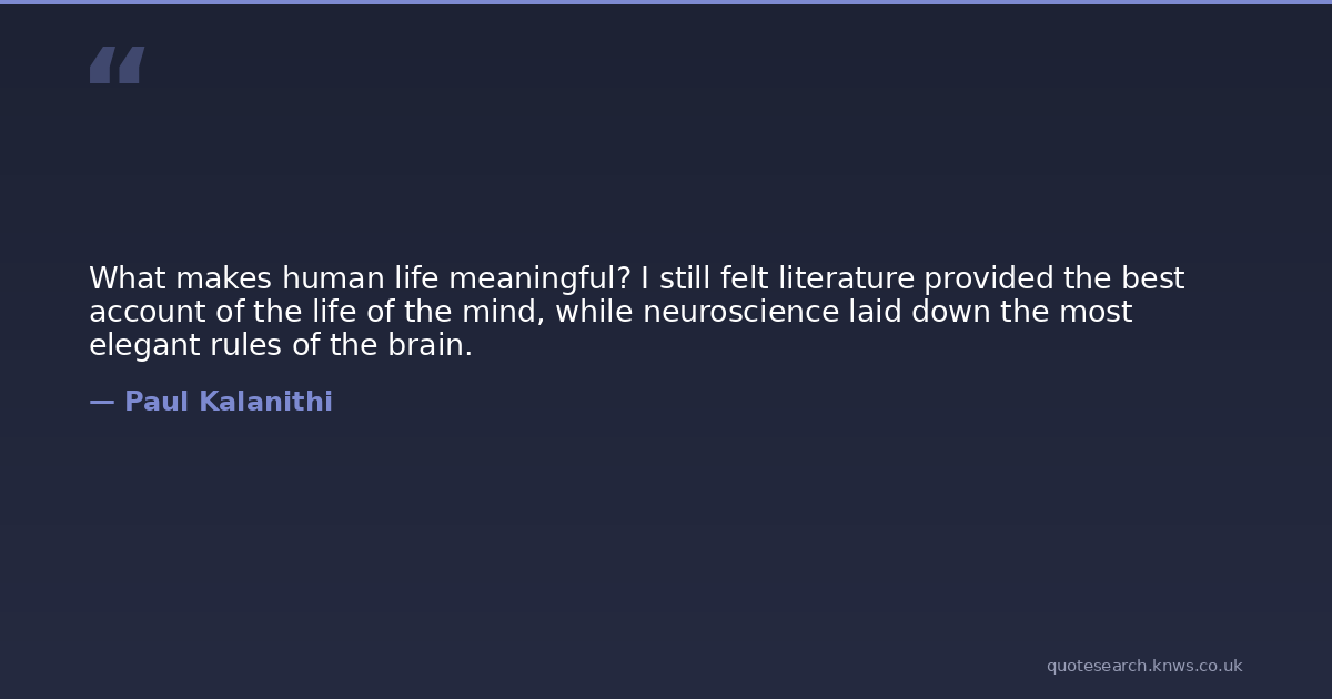 What makes human life meaningful? I still felt literature provided the best account of the life of the mind, while neuroscience laid down the most elegant rules of the brain.
