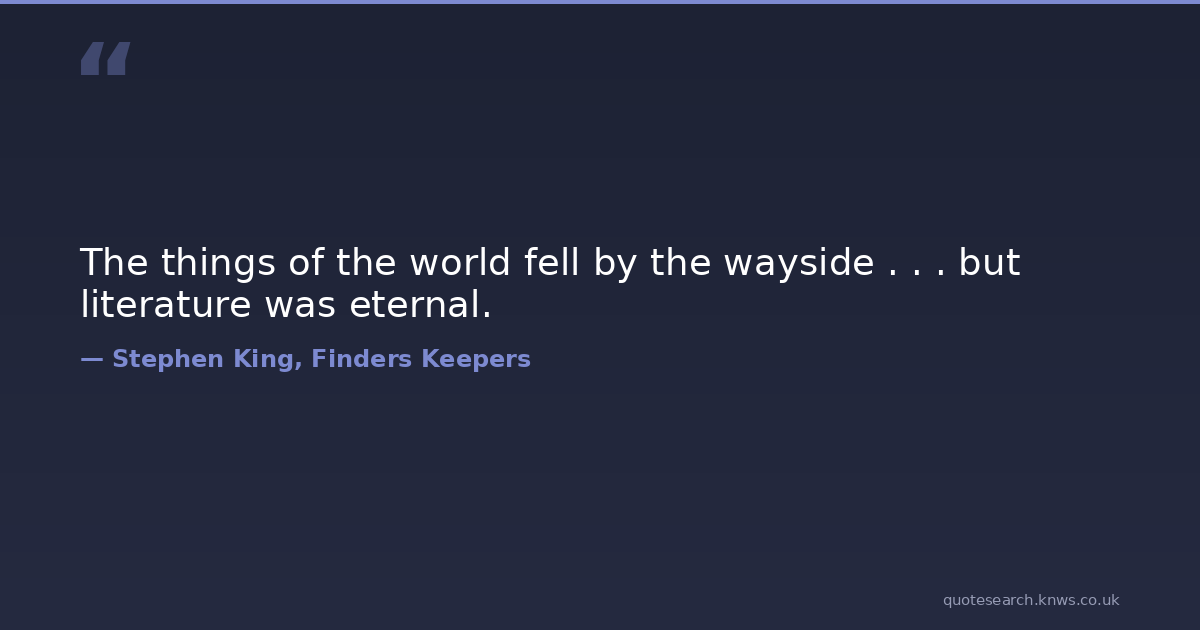 The things of the world fell by the wayside . . . but literature was eternal.