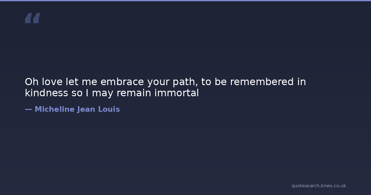 Oh love let me embrace your path, to be remembered in kindness so I may remain immortal