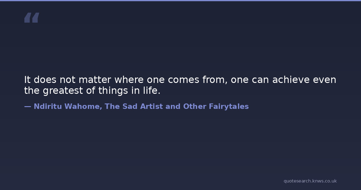 It does not matter where one comes from, one can achieve even the greatest of things in life.