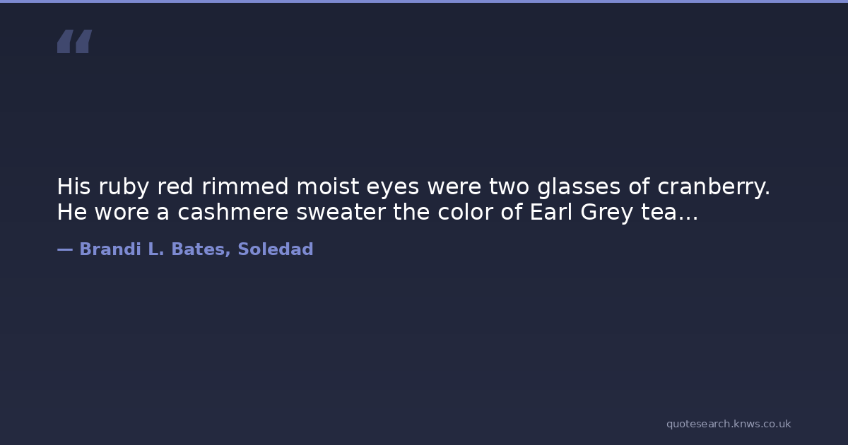 His ruby red rimmed moist eyes were two glasses of cranberry. He wore a cashmere sweater the color of Earl Grey tea...