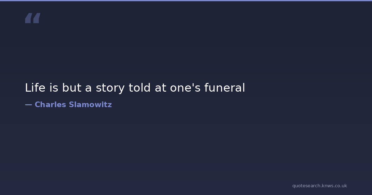 Life is but a story told at one's funeral awesome charles charles-slamowitz cool funeral inspiration life-philosophy making-moves philosophy slamowitz your-mother Download Image Share on X Share on Facebook Copy Link