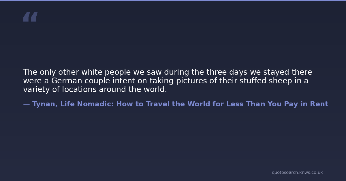 The only other white people we saw during the three days we stayed there were a German couple intent on taking pictures of their stuffed sheep in a variety of locations around the world.