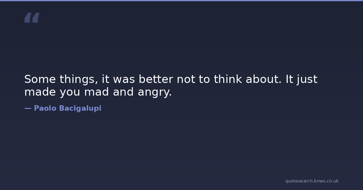 Some things, it was better not to think about. It just made you mad and angry.
