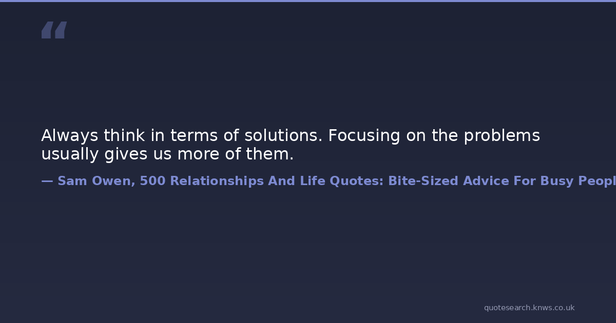 Always think in terms of solutions. Focusing on the problems usually gives us more of them.