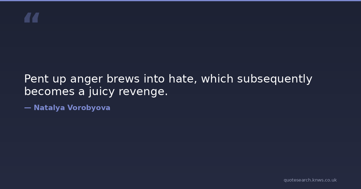Pent up anger brews into hate, which subsequently becomes a juicy revenge.